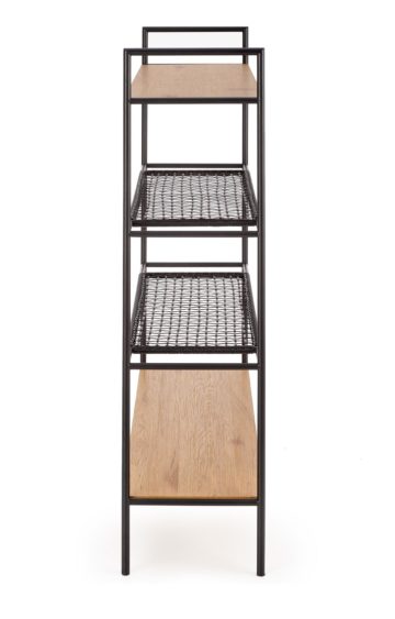 Poličar REG21 ima prirodan izgled. Okvir je izrađen od čelika s praškastim premazom u crnoj boji. Sadrži četiri police – dvije od laminiranog medijapana u boji zlatnog hrasta i dvije od sintetičkog ratana. Dimenzije poličara su 111/34/129 cm. Pogodan je za moderno ili rustikalno uređene interijere.