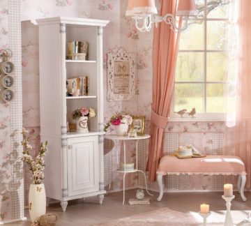 Regal za knjige su dio kolekcije Romantic. Sa svojim manjim dimenzijama obogaćuje svaki prostor i još uvijek pruža puno prostora za pohranu knjiga, dekora i drugih stvari. Dostupan je u bezvremenskoj bijeloj boji i ima rustikalne detajle. Police su zaštićene sa melaminom, otpornim na ogrebotine i prašinu.