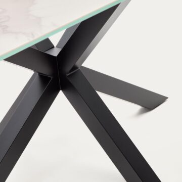 Stvorite ugodan prostor za posebne trenutke s obitelji i prijateljima uz blagovaonski stol Argo. Stol kombinira suvremenu estetiku s izdržljivim materijalima, poput porculanske površine Kalos Blanco i crnih epoksi čeličnih nogu, što osigurava bezvremenski izgled i dugovječnost.