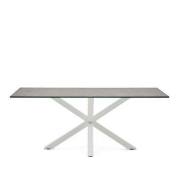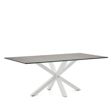 Pripremite prostor za nezaboravne trenutke za blagovaonskim stolom Argo, koji spaja modernu estetiku i vrhunske materijale. S elegantnom porculanskom površinom Iron Moss u bijeloj boji i stabilnim crnim čeličnim nogama, ovaj stol donosi profinjen i bezvremenski izgled u vaš blagovaonski prostor.