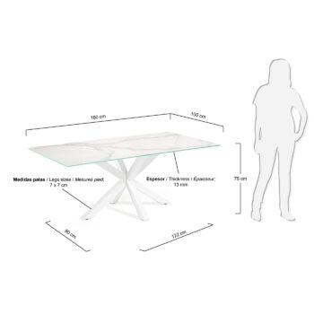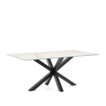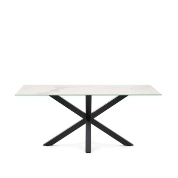 Uživajte u ugodnim trenucima uz blagovaonski stol Argo, koji spaja profinjen dizajn i vrhunske materijale. S porculanskom površinom i stabilnom čeličnom konstrukcijom u crnoj boji donosi suvremen i elegantan izgled, prikladan za sve moderne blagovaonice.
