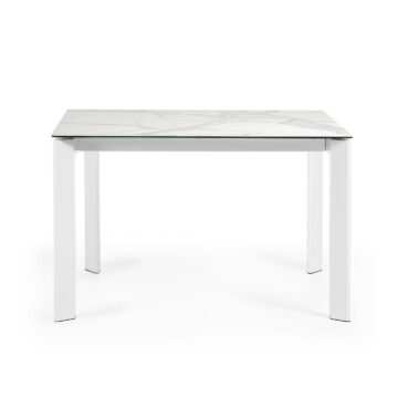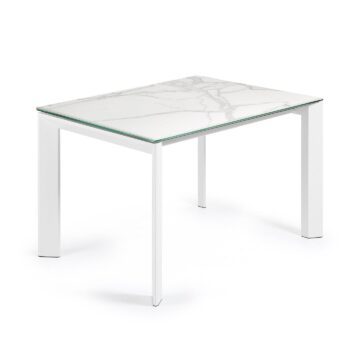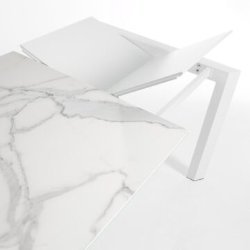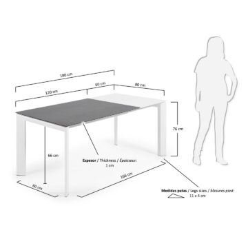 Stol Axis kombinira funkcionalnost i eleganciju. Sa svojim proširivim dizajnom omogućuje prilagodbu duljine do 180 cm, što ga čini idealnim izborom za moderne blagovaonice. Konstrukcija od epoksi obojenog čelika i visokotehnološke porculanske ploče s potporom od stakla osigurava trajnost i moderan izgled.
