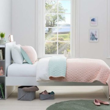 Posteljina je neizostavan detalj u dečijoj sobi. Izrađena je mekog pamuka u nežnim tonovima roze i svjetlo plave boje i sa ukrasnim štepovima u obliku srca. Zahvaljujući sintetičkom punjenju, prekrivač možete koristiti i tokom hladnijih dana. U cijenu je uključen prekrivač i jastučnica.