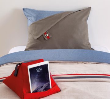 Posteljina je neizostavan detalj u dečijoj sobi. Izrađena je od poliestera u tonovima sive, plave, crvene i krem boje. Dekorativni jastuk ima džepić za držanje tableta i telefona. Zahvaljujući sintetičkom punjenju, možete prekrivač koristiti i tokom hladnijih dana.