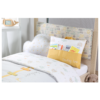 Posteljina je izrađena od pamuka u nježnoj kombinaciji boja. U cijenu su uključeni posteljina i dva ukrasna jastuka, i to jastuk u obliku oblaka i jastuk koji ima džepove za odlaganje knjiga i olovaka, a sa zadnje strane tračice koje omogućuju držanje knjige tijekom čitanja.