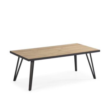 Sindi pravokutni stolić za kavu: Dizajniran s debelom hrastovom pločom i crnim detaljima, ovaj pravokutni pravokutni stolić Sindi nudi veliku površinu za hranu, piće i dekoraciju. Sa svojom podesivom dužinom od 140 do 180 cm, idealan je za obiteljska okupljanja i zabave.