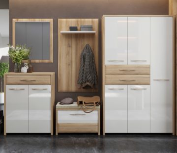 Predsoblje Milla GALA je kvalitetan i elegantno izrađen namještaj. Ima meko zatvaranje vrata i ladica. Fronte su izrađene od medijapana (MDF) lakiranog u bež s dodatkom boje pacifičkog oraha. Oblik ručki daje dodatnu eleganciju. Program GALA se može sastaviti po želji jer na raspolaganju imate pojedinačne elemente koje možete kupiti zasebno i sami sastaviti željeni sklop.