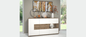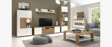 Predsoblje Milla STELA je kvalitetan namještaj. Ima mehanizam za otvaranje vrata PUSH TO OPEN. Prednje strane su izrađene od medijapana (MDF) lakirane na bijeli sjaj, a implantati su tobacco hrast. Program STELA možete sastaviti po želji, jer imate na raspolagu pojedinačne elemente.