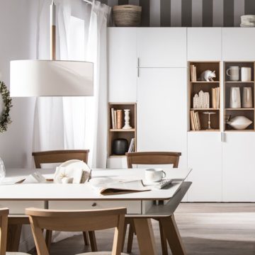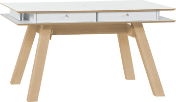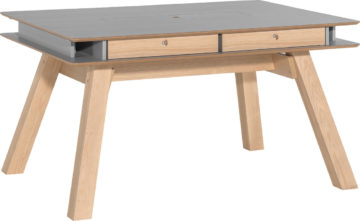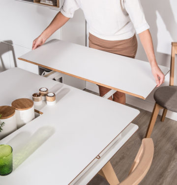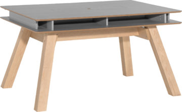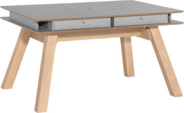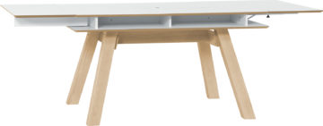 4You raztezljivi stol je dimenzija 139 x 100 x 76 cm (dužina x dubina x visina). S jednim produžetkom može se produžiti na 179 cm, s dva na 219 cm. Dostupan je s bijelom pločom i hrastovim nogama ili sa sivom pločom i hrastovim nogama. Izrađena je od iverice, zaštićena melaminskom zaštitom.