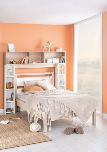 Regal za knjige Lermo kompatibilan je istoimenskome krevetu i stolu. Oblikovan je na suvremen i zanimljiv način, odlikuje se estetskom drveno-bijelom kombinacijom. Izrađen je od oplemenjene iverne ploče. Rubove štiti ABS rubna traka.
