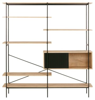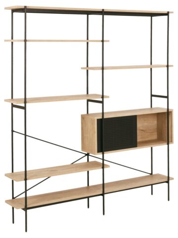 Regal za knjige Angus sastoji se od pet hrastovih polica. Svoj prefinjen izgled dopunjuje sa policom koja uključuje i crna vrata za zatvaranje. Regal sa matiranim crnim okvirom je idealan za odlaganje svakodnevnih stvari, a može vam poslužiti kao odličan kolekcionar knjiga i umjetnina. Proizvod je dostupan u više boja.