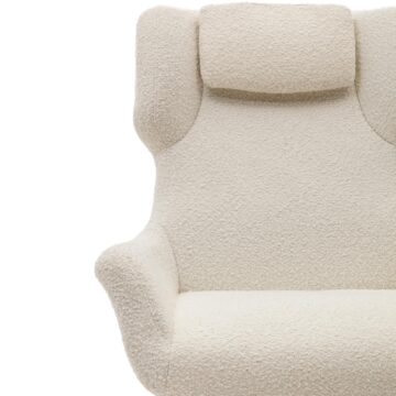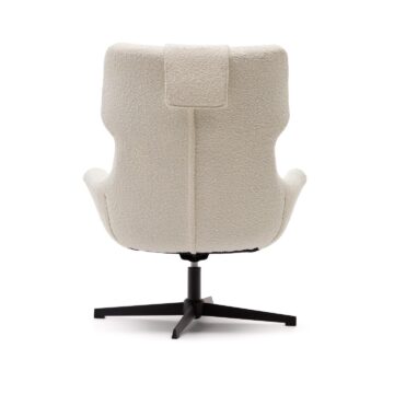 Rotirajuća fotelja Zalina u bijeloj boji presvučena je kvalitetnom boucle tkaninom koja pruža ugodan osjećaj i vizualnu privlačnost. Njena konstrukcija od čelika s crnim završetkom osigurava izdržljivost, dok oblik i prostrane dimenzije omogućuju udobno sjedenje.