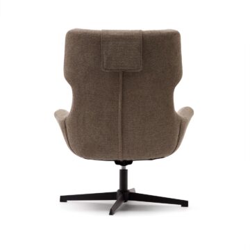 Rotirajuća fotelja Zalina u smeđoj boji izrađena je od kvalitetnih materijala, što jamči dugotrajnost i ekološki prihvatljiv odabir. Sjedište je obloženo poliuretanskom pjenom i presvučeno tkaninom koja se lako održava. Njena čelična konstrukcija s crnim završetkom pruža čvrstoću, dok oblik i prostrane dimenzije omogućuju udobno sjedenje.