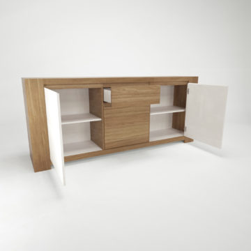 Izrađen od oplemenitene iverne ploće. Vrata so izrađena iz Melamina bijele boje, ostalo što vidite u boji hrasta pa je furnirano sa hrastovim furnirjem.
