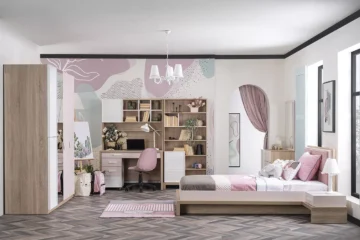 Tehnički opis sastava mladenačke sobe Angel 2 donosi cjelovito rješenje za uređenje suvremenog mladenačkog prostora, kombinirajući funkcionalnost, estetiku i visoku kvalitetu izrade. U bijeloj, prirodnoj i roza boji, soba odražava svježinu i nježnost, istovremeno nudeći prostor koji je ugodan za odmor, kao i učinkovit za učenje i pohranu.