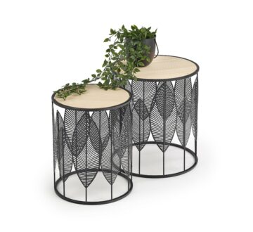 Set Okruglih stolića za dnevni boravak Folla ima ploču izrađenu od laminiranog mediapana. Lijepo podnožje je izrađeno od prašno lakiranog metala u crnoj ili bijeloj boji. Stolovi su okrugli i modernog dizajna, a dostupni su u sljedećim dimenzijama: