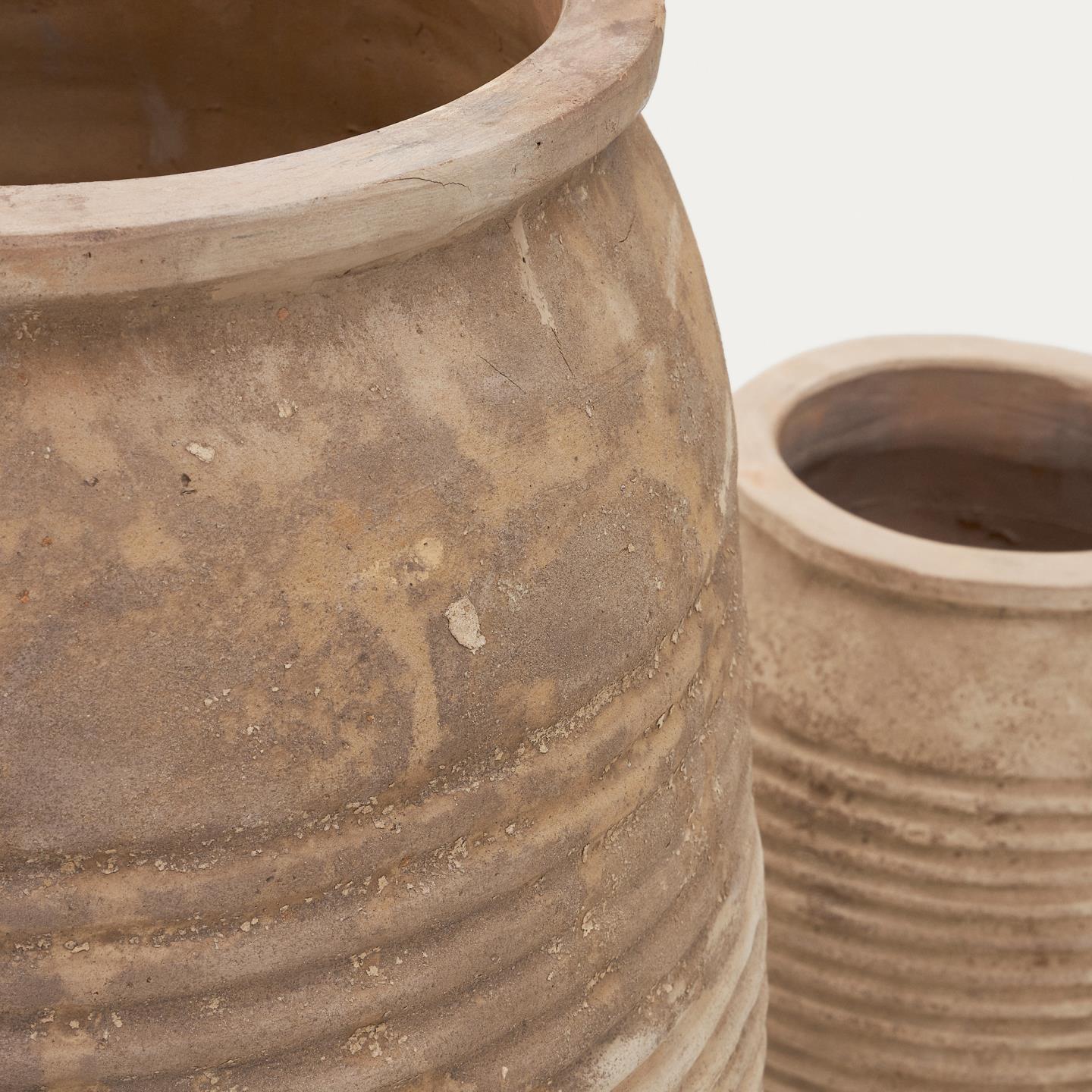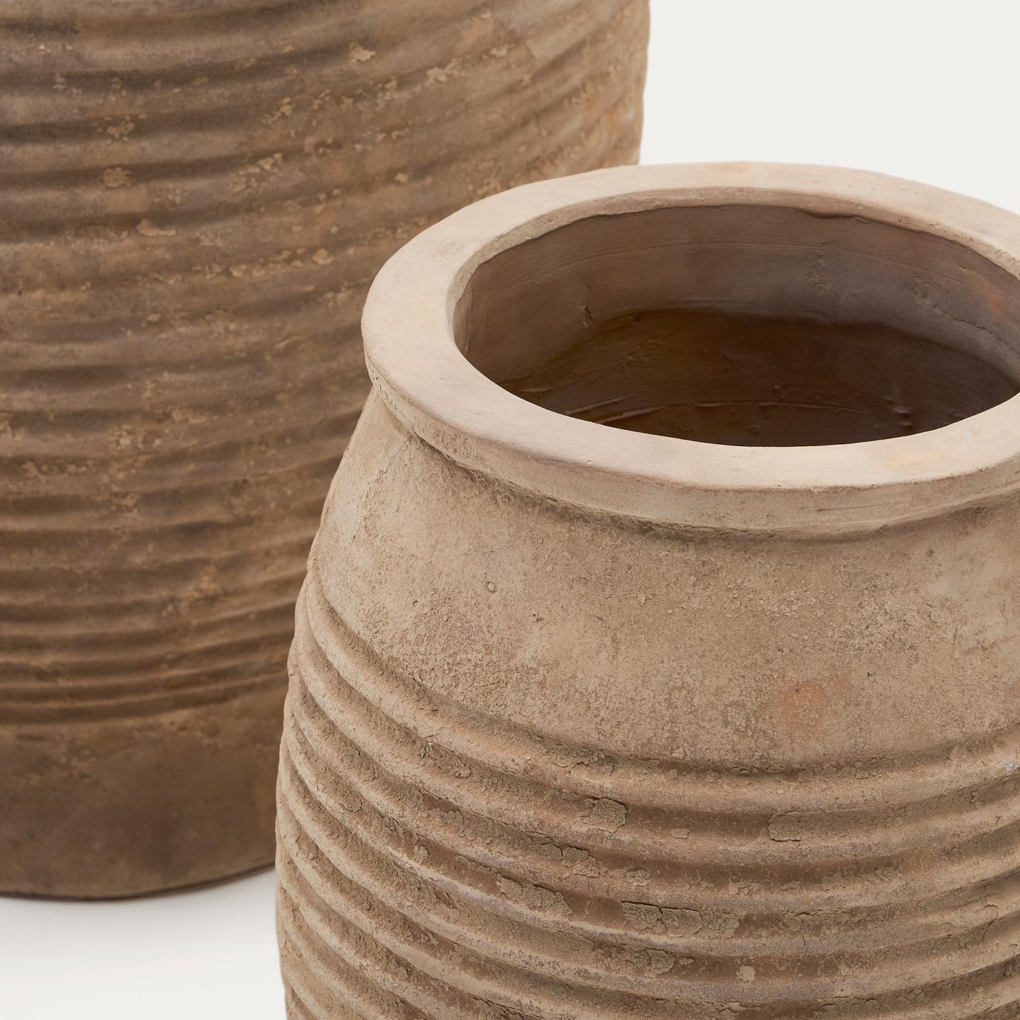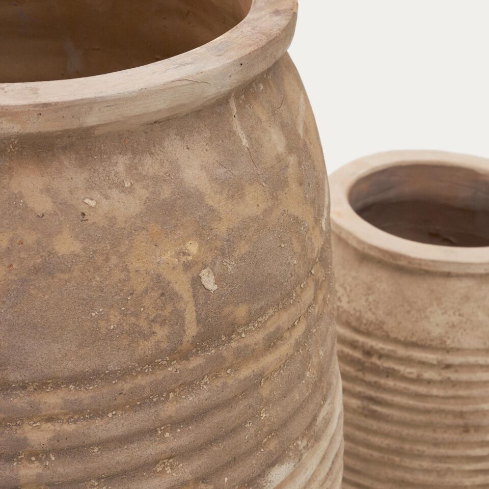 Set vrtnih lonaca Llonga od prirodne terakote s prirodnim završetkom unosi ljepotu prirode i bezvremensku eleganciju u vaš dom ili vrt. Zemljani tonovi i organske teksture stvaraju topao i ugodan ambijent.