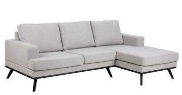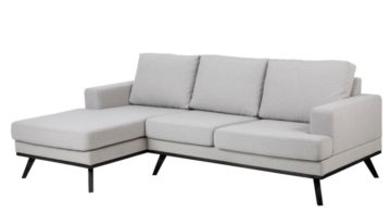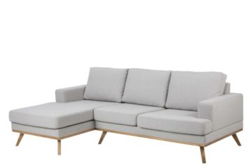 Sofa Norwich izrađena je od Stuart tekstila u svijetlo sivoj boji s hrastovom ili crnom bazom. Možete birati između lijevog ili desnog izgleda. Gledate prema sjedalu i pokazujete gdje je produženo sjedalo. Na temelju toga možete vidjeti radi li se o lijevom ili desnom rasporedu.