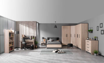 Namještaj napravljen je od oplemenjene iverne ploče E1 kvalitete, debljine 18 i 25 mm. Vrata i ladice funkcioniraju na mehanizam mekog i tihog zatvaranja, a šipke za vješalice (unutar ormara) imaju LED svjetla na senzor.