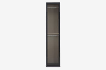 Boja: crni okvir dodaje snažan vizualni kontrast, dok stakleni rub omogućuje unutrašnjosti ormarića da ostane dio cjelokupnog uređenja prostorije.