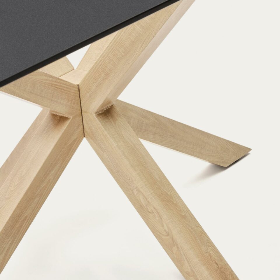 Stakleni pravokutni blagovaonski stol Argo nije samo stvoren za savršeno druženje, već ćete svom domu dodati profinjen dizajn koji spaja vrhunske materijale i moderne linije. Njegova kombinacija crnog matiranog stakla i nogu s drvenom teksturom donosi topao, ali suvremen dodir vašem prostoru.
