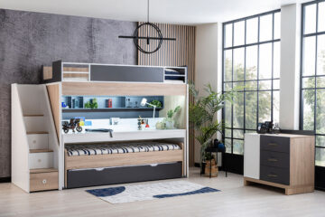 City stepenice za krevet na kat osmišljene su tako da omogućuju siguran i lak pristup gornjem krevetu, a istovremeno pružaju dodatni prostor za pohranu, što je uvijek vrlo cijenjeno u dječjim i mladenačkim sobama.