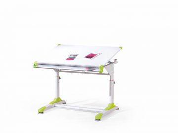 Stol COLLORIDO izrađen je od lakiranog MDF-a i obojenog čeličnog okvira. Stol je bijele boje i dolazi u kompletu s dva niza ukrasa u zelenoj i ružičastoj boji. Stol možete prilagoditi svom ukusu. Collorido je podesiv po visini i ima podesivi nagib gornje površine za crtanje. Dimenzije stola su 100 x 66 centimetara, a visina se kreće od 69 do 84 centimetra. Težina stola je 24,0 kilograma.