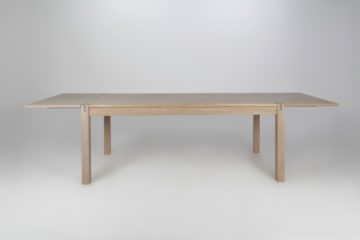Blagovaonski stol Cope napravljen je od drva zaštićenog bijelo pigmentiranim hrastovim furnirom. Uz stol možete kupiti i dva produžetka.