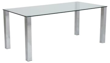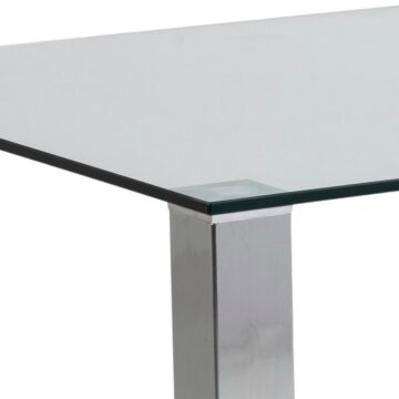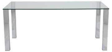 Stol Kante ima kromirano podnožje i moderni stakleni gornji dio. Staklo je prozirno, debljine 12 mm. Dostupan je u različitim dimenzijama: