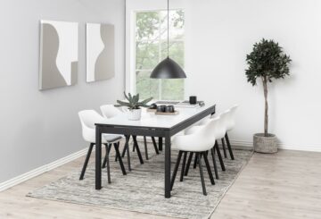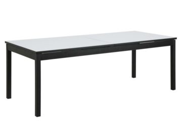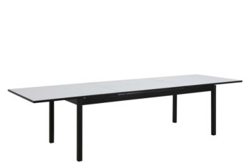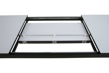 Mosel je stol za blagovaonice jednostavnog i modernog dizajna. Ima metalno podnožje crne boje i gornju površinu izrađenu od visokotlačnog laminata bijele boje. Stol ima ugrađen produžetak.