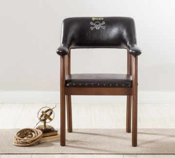 Stolica ima tamno smeđu bazu. Jastuk sjedala je izrađen od umjetne kože u crnoj boji. Stolica će zadiviti baš svakog malog gusara u srcu.