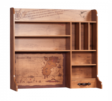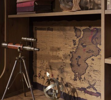 Studijska jedinica Pirate je dorađena do posljednjih detalja. Nacrtanu ima kartu sa blagom, ima mnogo manjih polica, koje su izvrsne za lakšu organizaciju i ladicu, koja se tiho zatvara. Ladica ima i veliku ručku. Je djelo proizvođača Cilek. Zaštićena je sa melaminom, otpornim na ogrebotine i prašinu.