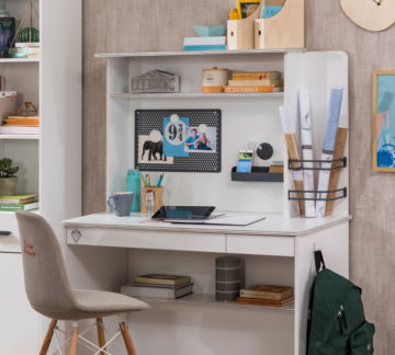 Studijska jedinica White je zaista sjajan dodatak stolu iste linije. Uz policu za odlaganje ima i magnetsku ploču. Na nju možemo objesiti liste i druge stvari sa pomoću magneta. Ima dovoljno dodatnog prostora za pohranu školskog pribora. Zaštićena je sa melaminom otpornim na ogrebotine i prašinu.