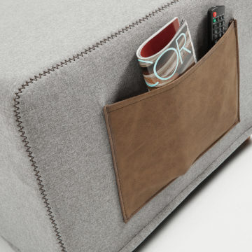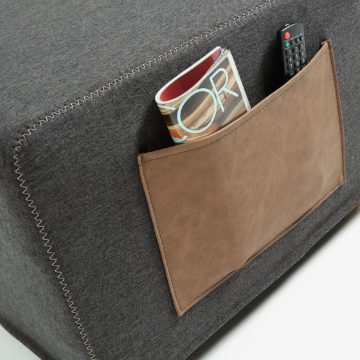Tabure Kos odlikuje se elegantnim izgledom i inovativnim i višenamijenskim dizajnom. Kos može služiti i kao ležište! Ima i smeđe žepove. Izrađen je od bukovog drva, pijene, anti-stain tkanine i iverne ploče. Dobavljiv je u svijetlo sivoj i grafit boji.