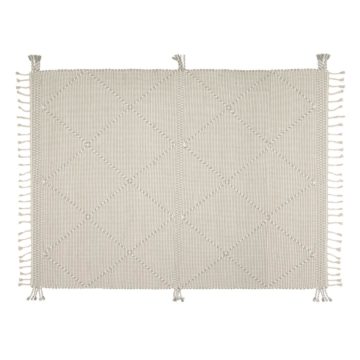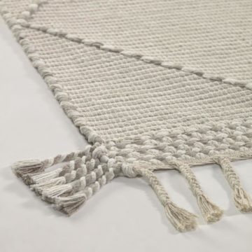 Tepih Nutrit odlikuje se elegantnim izgledom i kvalitetnom iizradom od 100 % pamuka. Suvremen dizajn postignut je izpletenim uzorkom, koji če uljepšati mnoge prostore. Dobavljiv je u bijež i crnoj verziji.