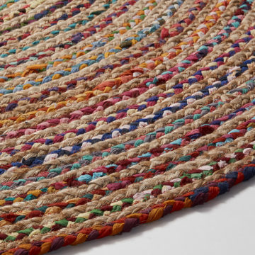 Okrugli tepih Samy odličan je izbor za ljubitelje šarenog stila. Vibrantnim izgledom svaki če prostor napravit topliji i domačiji. Uz privlačan izgled odlikuje se i kvalitetnom i prirodnom izradom od jute i pamuka.