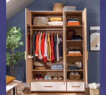 Trodijelni ormar Modera nudi više funkcionalnosti s brojnim policama, ladicama i prostranim interijerom.