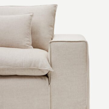 Trosjed je izrađen od kvalitetnih materijala, uključujući poliuretansku pjenu, akrilna vlakna, borovinu i ivericu E0, što mu daje čvrstoću i dugotrajnost. Sa širinom od 280 cm, dubinom od 107 cm i udobnim sjedištem, trosjed nudi dovoljno prostora za opuštanje i druženje.