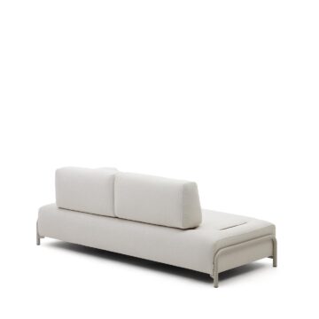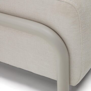 Trosjed Cambo u bež boji – 232 cm izrađen je s baršunastom (chenille) navlakom u bež tonu i stabilnom metalnom konstrukcijom u istoj barvi, što mu daje elegantan i udoban izgled. Pruža ugodno sjedenje koje poziva na opuštanje, dok prostrani jastuci i kvalitetno punjenje osiguravaju dugotrajnu udobnost.