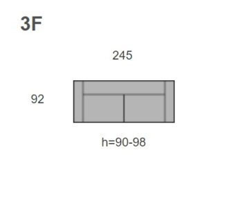 Dimenzije sofe su 245 x 92 x 90-98 cm. Dubina sjedala je 55 cm. Visina sjedala je 43 cm.