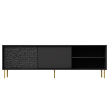 Ormarić RTV-1 BULLET osvaja svojim trodimenzionalnim ukrasom na prednjoj strani, što je nesumnjivo karakterističan element BULLET kolekcije. Crna boja namještaja u kombinaciji sa zlatnim vitkim nogama izgleda lijepo i elegantno.
