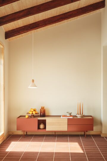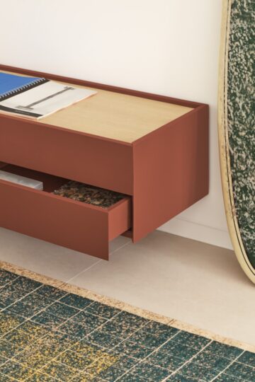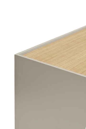 - Korpus: Mat lakirani MDF u kombinaciji s prirodnim hrastovim furnirom za elegantan izgled.
