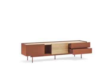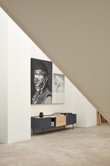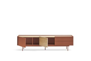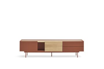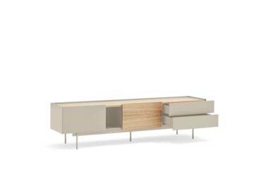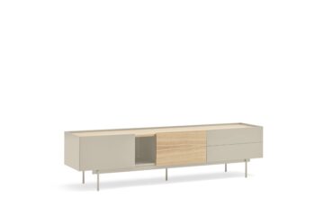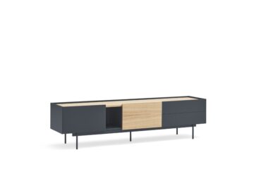 TV-komoda Otto spaja moderan dizajn s vrhunskom funkcionalnošću. Kombinacija naglašenih boja i prirodnih detalja furnira unosi eleganciju u dnevni prostor, dok prostran dizajn omogućuje organiziranu pohranu.