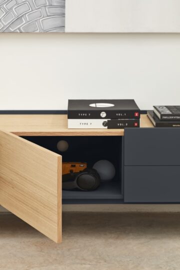 - Kombinacija lakiranih površina i hrastovog furnira dodaje sofisticiranost i toplinu vašem prostoru.