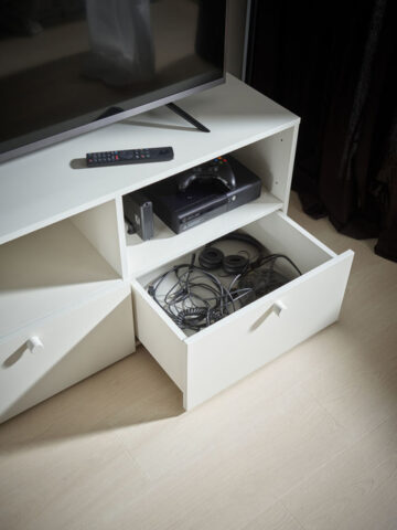 3 ladice i 3 otvorene niše: s praktičnim otvorima za kabele – idealno za igraće konzole, multimedijske uređaje i daljinske upravljače
