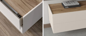 Odabrana kombinacija drva u dekoru Tobacco hrasta i boje kašmira stvara toplinu i naglašava eleganciju. Obostrano lakirane fronte i unutrašnjost u drvu osiguravaju iznimnu kvalitetu i trajnost.