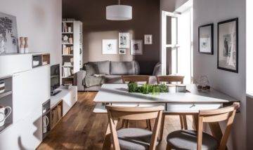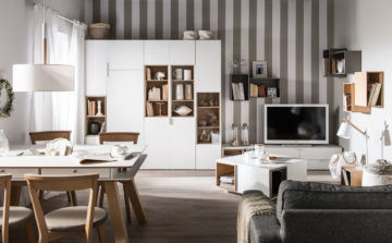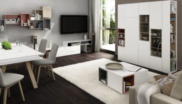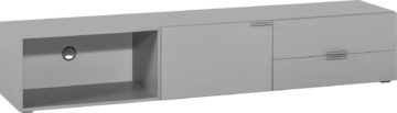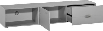 Tv komoda – ormarić je izrađen od iverice zaštićen vrhunskim melaminom. Ima dvije ladice i jedna vrata koja imaju meko zatvaranje. Ormarić ima otvor za električne kablove. Dostupan je u bijeloj ili sivoj boji. Dimenzije (dužina x dubina x visina): 187 x 42 x 35 cm.