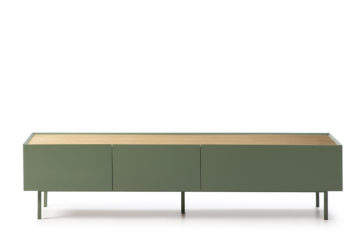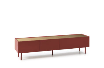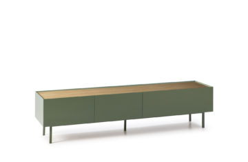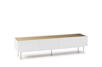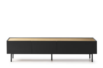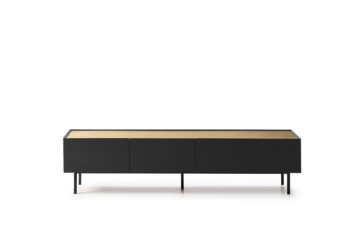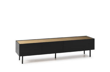 Tv komoda – ormarić Arista izrađen je od lakirane MDF ploče. Njegov izgled dopunjuje furnir prirodnog hrasta. Metalne noge visine su 18 centimetra. Maksimalna nosivost ormarića je 30 kg.