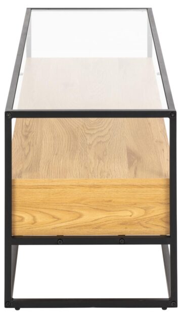 - Kombinacija materijala: Crni okvir od praškasto premazanog čelika savršeno se uklapa s mat površinom divljeg hrasta, stvarajući moderan i prirodan dojam.