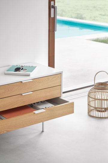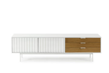 Ormarić Sierra izrađen je od lakirane MDF ploče. Dopunjuje ju furnir prirodnog hrasta na ladicama. Metalne noge visine su 18 centimetra. Maksimalna nosivost ormarića je 30 kg. Ima 2 vrata i 3 ladice.